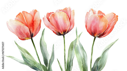 Fototapeta premium Watercolor spring flowers collection, Spring florals isolated on a...