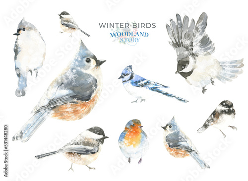 Fototapeta premium Watercolor squirrel,mouse,bird, Christmas illustration. Woodland winter...