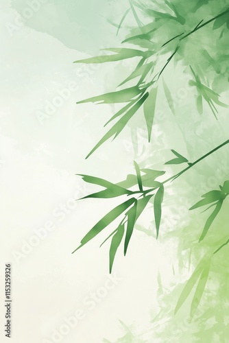 © 王原, Obraz premium Watercolor style Chinese bamboo background