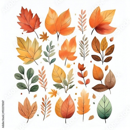 © Mykmicky, Fototapeta premium Watercolor style cliparts on the theme of autumn