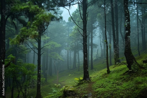 Obraz premium Watercolor-style landscape of mountains and forests, painted nature....