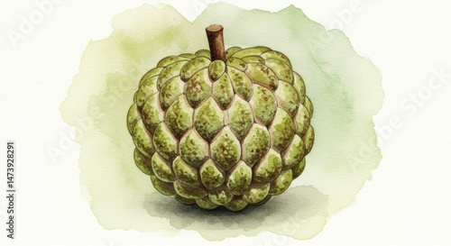 © Watercolor, Fototapeta premium Watercolor sugar apple fruit painting
