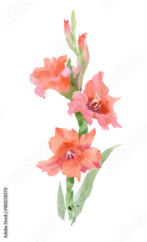 © kostanproff, Obraz premium Watercolor Summer blooming flowers illustration.