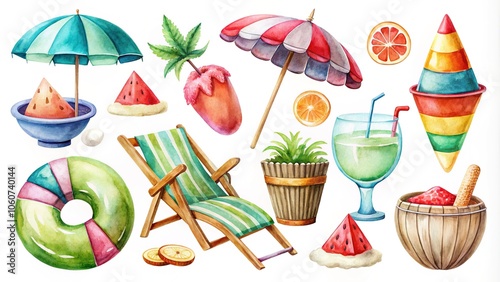 Fototapeta premium Watercolor Summer Travel Illustration - Hand Drawn Elements
