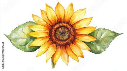 Fototapeta premium Watercolor Sunflower Art with Lush Green Leaves