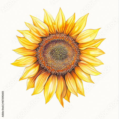 © peekeedee, Fototapeta premium watercolor sunflower on white background