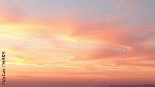 Obraz premium Watercolor sunset sky with gentle brushstrokes and subtle color blending,...