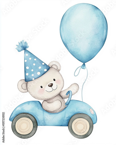 © Wendelin, Fototapeta premium Watercolor teddy bear with polka dots light steel blue