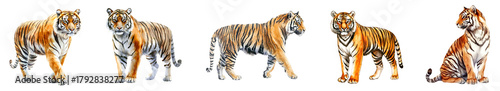 © Silmiart, Naklejka premium Watercolor tiger illustrations on transparent background