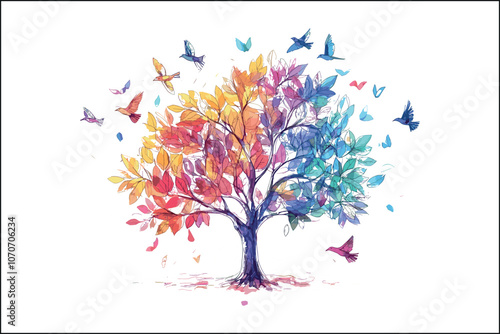 © silhouette stock , Fototapeta premium Watercolor Tree of Life Art – Spiritual Nature-Inspired Wall Print for Home DecorTree of Life Watercolor Painting – Symbolic Art Print of Growth and HarmonyBoho Tree of Life Illustration – Hand-Pa