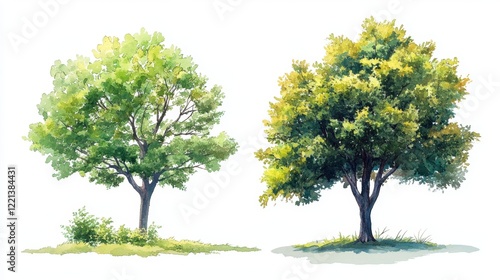© Gro, Fototapeta premium Watercolor Tree Side View Isolated on White Background for Landscape and Architecture Drawing