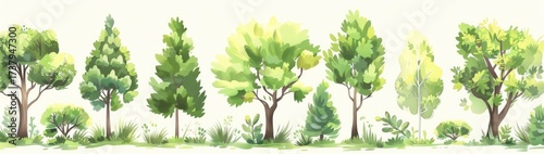 Fototapeta premium Watercolor trees landscape illustration for use as a background or border