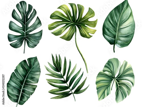 Fototapeta premium Watercolor Tropical Leaves Monstera Palm Exotic Foliage
