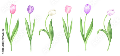 © Кристина Зюкова, Obraz premium Watercolor Tulips Set