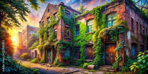 Fototapeta premium Watercolor Urban Exploration: Abandoned Building, Grungy Textures, Artistic...