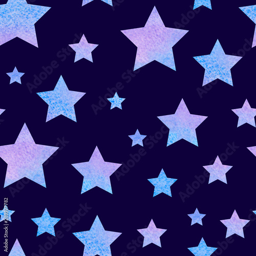 © Anna, Obraz premium watercolor сute seamless pattern night sky for the textile fabric or wallpaper on dark background.