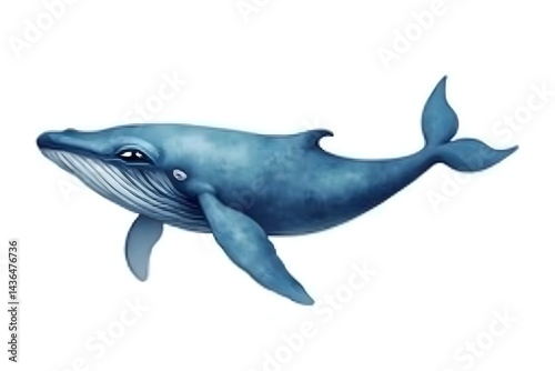 © Samir, Obraz premium Watercolor Whale in Gentle Ocean Blues on White Background