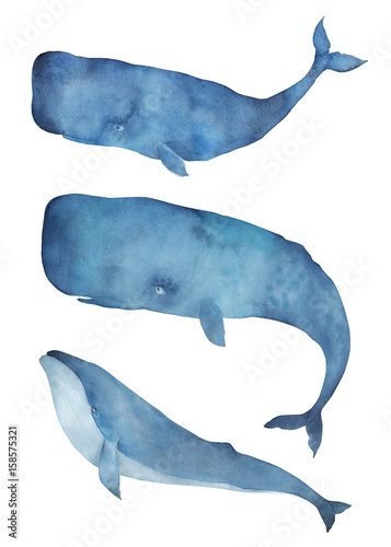 © natikka, Naklejka premium Watercolor whale set. Isolated illustration