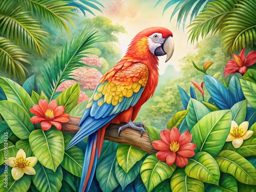 Fototapeta premium Watercolor whimsy: A delightful parrot portrait for your home.