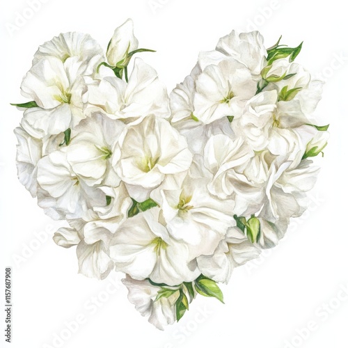 © Juli, Obraz premium Watercolor White Flowers in Shape of Heart Isolated on White Background
