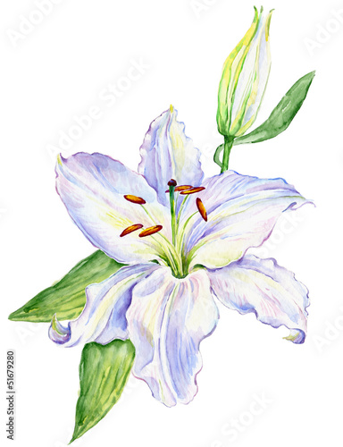 © Irina Chekmareva, Naklejka premium Watercolor white lily