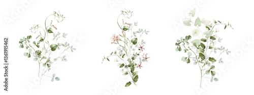 Fototapeta premium Watercolor wildflower floral illustration set - green gold flower daisy ivy...