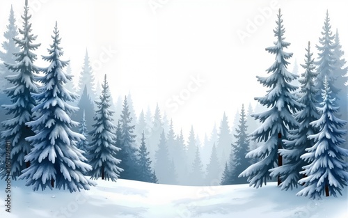 Fototapeta premium Watercolor winter forest illustration on transparent background, perfect for Christmas cards or. High quality