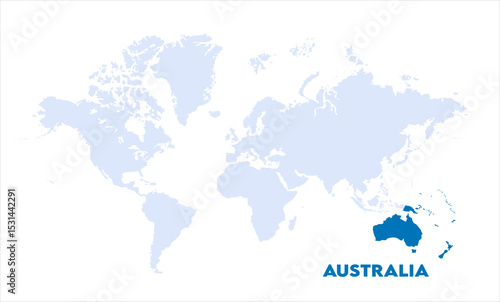 Naklejka premium Watercolor world map with Australia-08, Map of Australia, highlighted on the world map, Australia on the world map, Satellite view, Australia location on the globe.