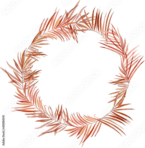 © Aleksandra, Obraz premium watercolor wreath with branches of dry plants on white background