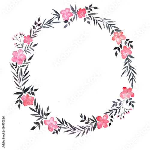 Fototapeta premium watercolor wreath with pink flowers