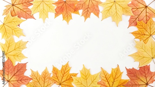 © vilavanh, Obraz premium Watercolor yellow and orange maple leaf designs in a geometric pattern border, leaves, borders, illustrations, abstract