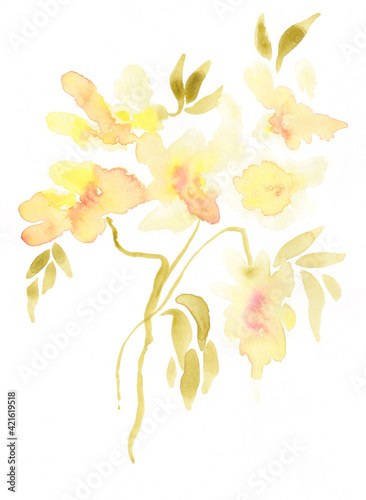 © iseelikethat, Fototapeta premium Watercolor Yellow Wild Flowers Floral Dreamy Background Texture Hand Painted.