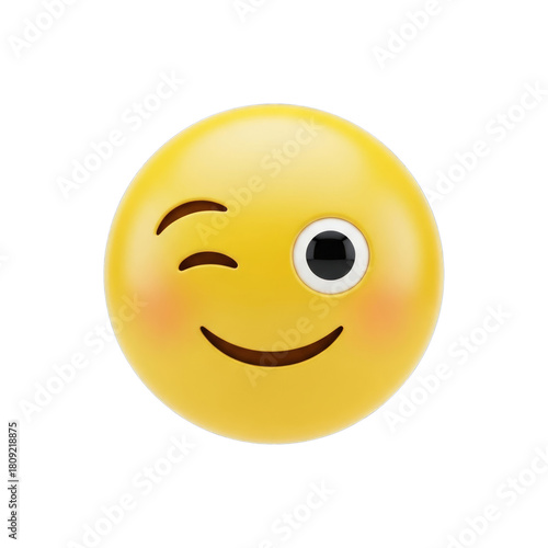© SAYEDA, Fototapeta premium Watercolor Yellow winking emoji with blush isolated on a transparent background
