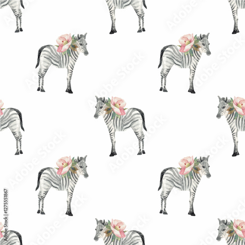Obraz premium watercolor zebra animal baby illustration seamless pattern isolated on white