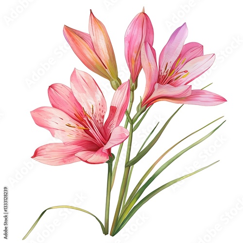 © MahmudulHassan, Naklejka premium Watercolor Zephyranthes Isolated on White Background. Beautiful Zephyranthes Flower