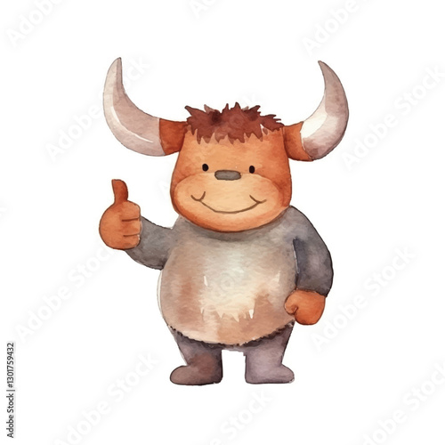 Fototapeta premium watercolors Cute bull thumbs up illustration