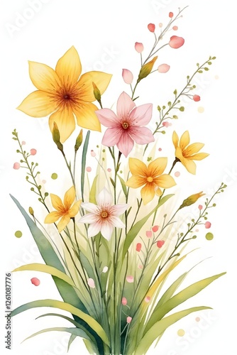 © Vladimir, Naklejka premium watercolour bouquet of spring flowers on white
