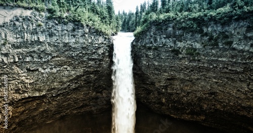 © vectorfusionart, Fototapeta premium Waterfall and forest and stone