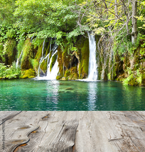 © REDPIXEL, Naklejka premium waterfall and wood pier