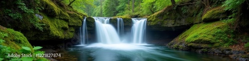 © meion, Fototapeta premium Waterfall at Golitha Falls with moss covered rocks, forest, landscape, waterfall scene