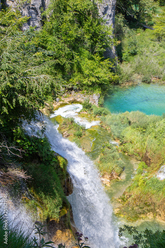 © Tomtsya, Naklejka premium Waterfall at Plitvice lakes national park