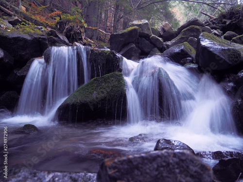 © Sergii Mironenko, Obraz premium waterfall at the carpathian forest