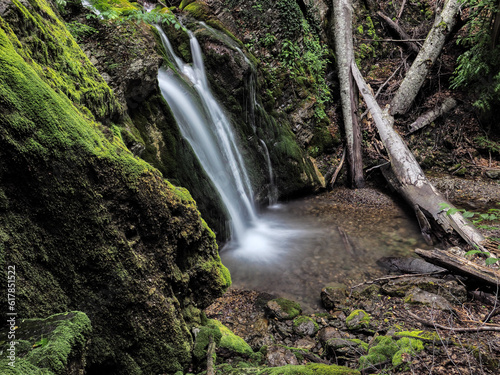 © Sergii Mironenko, Fototapeta premium waterfall at the spring misty forest