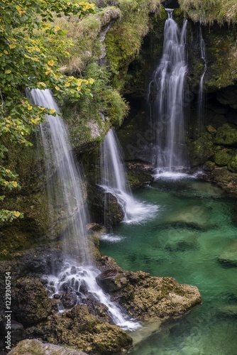 © Sonja Jordan/imageBROKER, Naklejka premium Waterfall at the Traunfall, Upper Austria, Austria, Europe