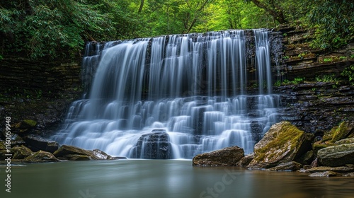 © almeera, Fototapeta premium Waterfall Cascading Down a Stone Cliff