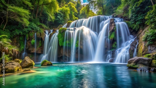 © Praphan, Obraz premium waterfall cascading down into the water, natural wonderland