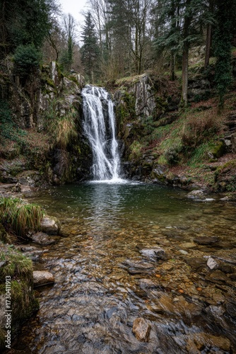 © sitti, Obraz premium Waterfall cascading into a tranquil pool, surrounded by lush forest