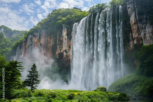 © mariam, Naklejka premium waterfall down a rocky cliff