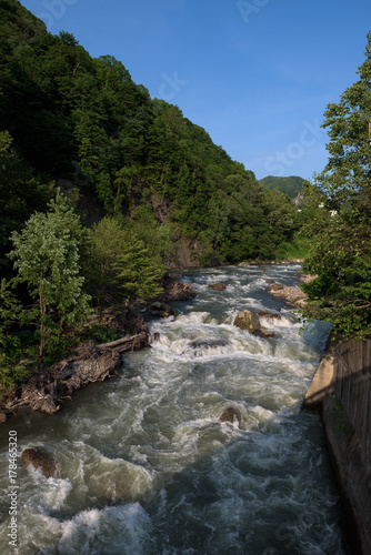 © nielsvos, Fototapeta premium Waterfall dropping down into the Sounkyo gorge from the cliffs of Daisetsuzan National Park, Hokkaido, Japan
