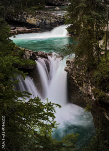 © Matt, Obraz premium Waterfall Flowing Into Tranquil Forest Pool